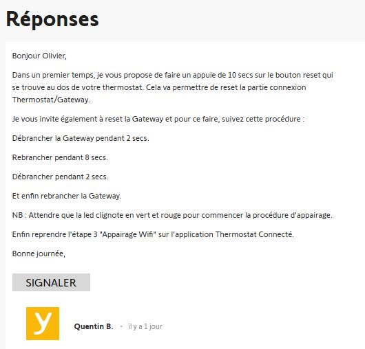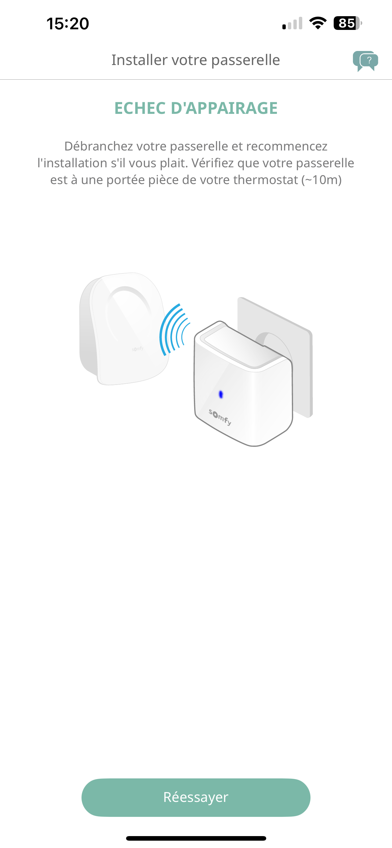Je n’arrive pas à faire lappairage entre le thermostat et la passerelle.
