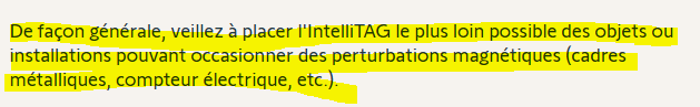 Si vous avez fait le recalibrage il faut chercher si il y a une présence de métal dans un rayon de 20cm autour de l'intellitag.