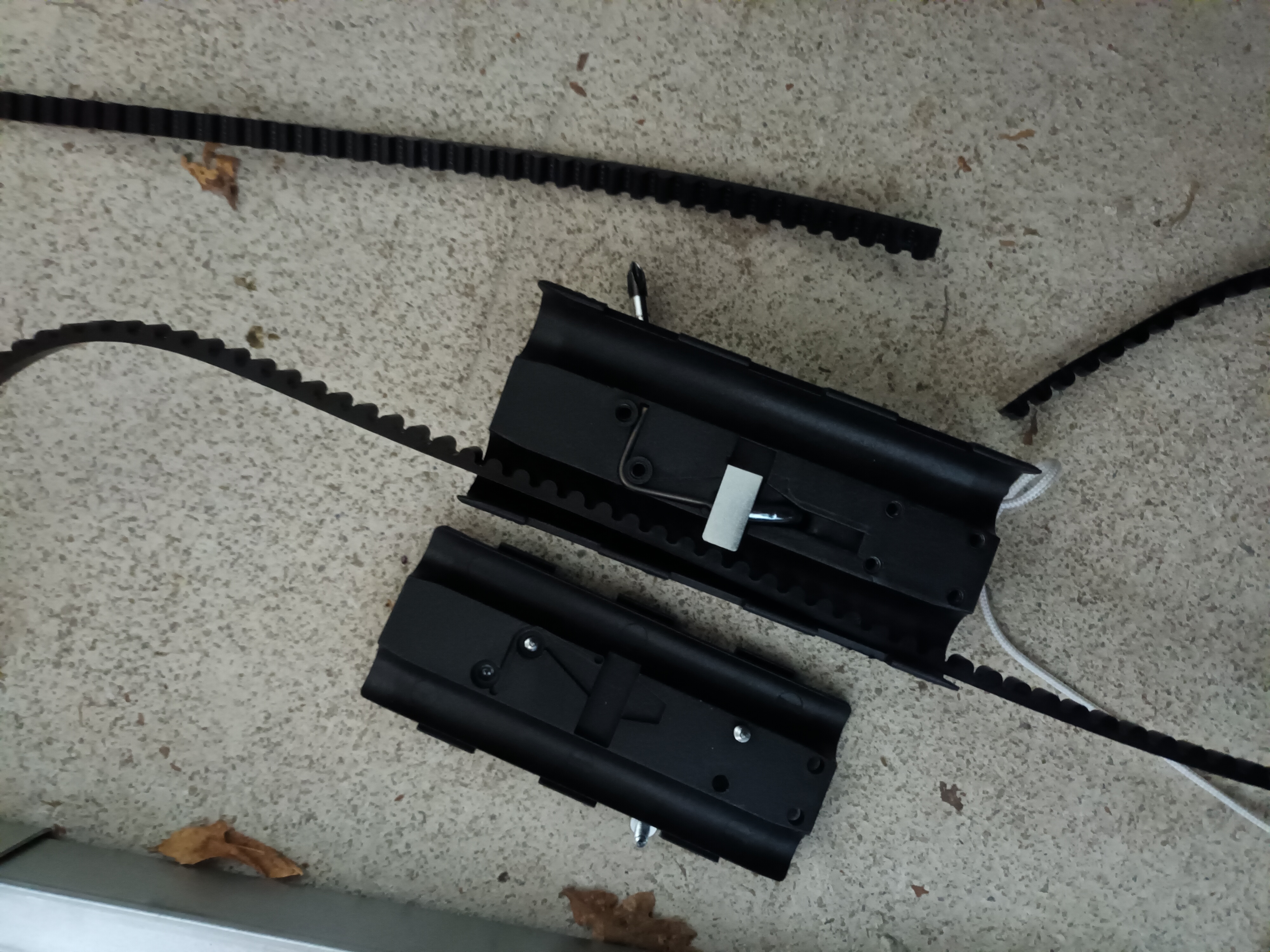 Bonjour, voilà une photo de la navette ouverte et des 2 extrémités de la courroie.