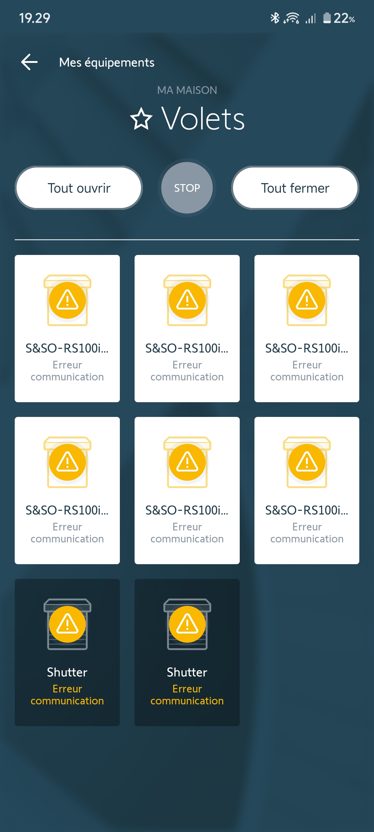 Mes volets roulants ne répondent plus dans l'application Tahoma ni dans l'application Alexa. J'ai réinitialisé la box, supprimé les volets plus ajouté à nouveau. Toujours le même problème, les volets sont détectés, présents dans Tahoma mais impossible de les contrôler