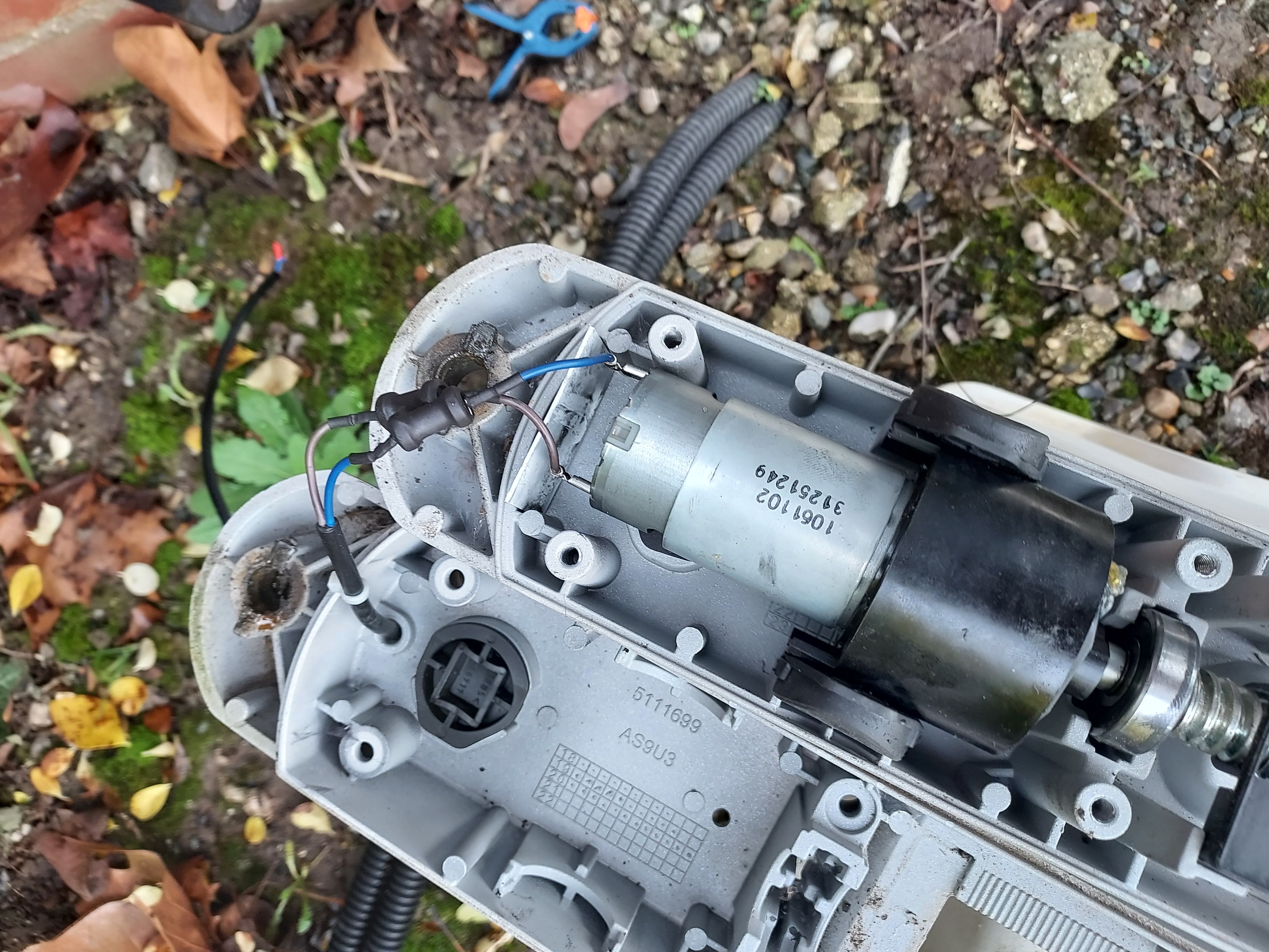 Depuis quelques jours j'avais une panne intermittente, après ouverture du vérin j'ai constaté que le câble moteur était totalement dessoudé au niveau de l'antiparasite.