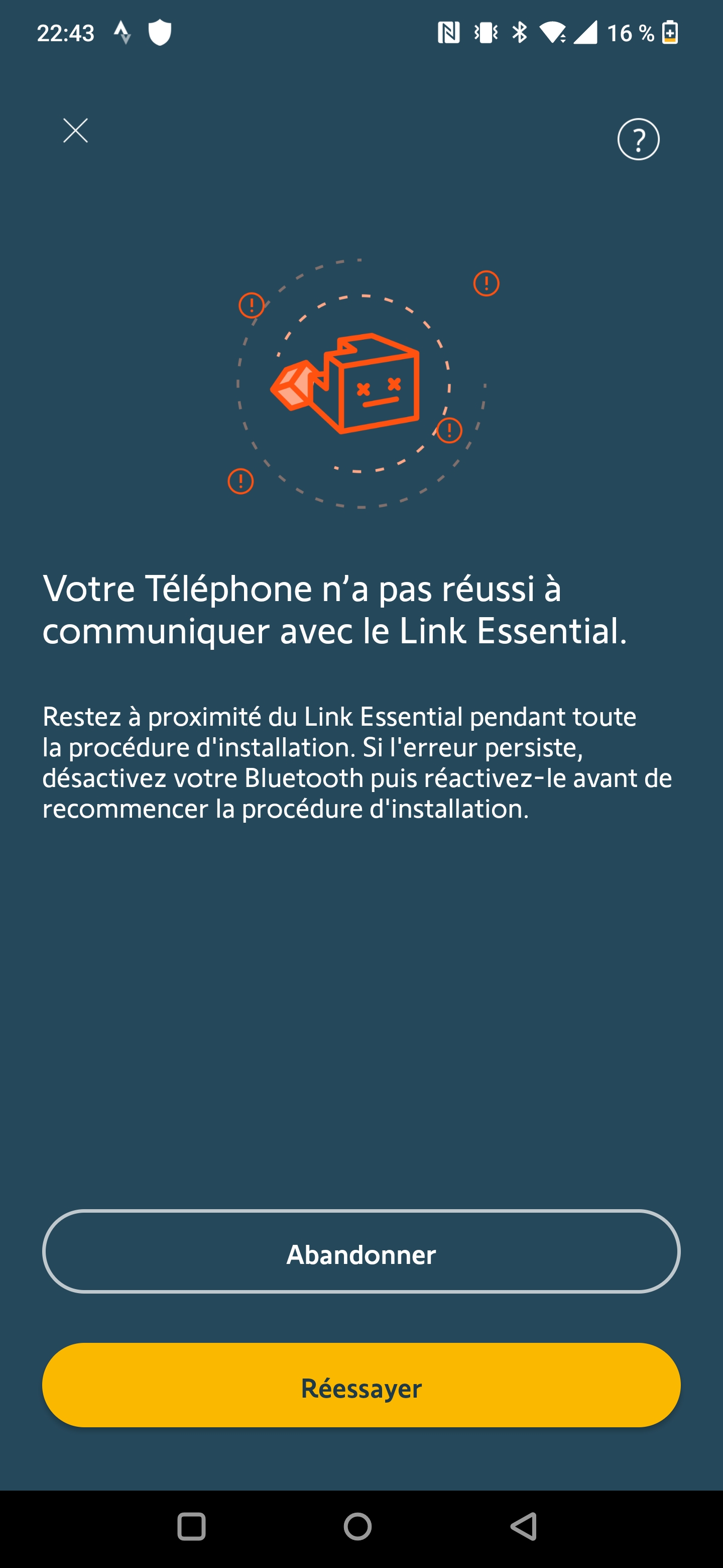 J'ai donc tenté de le reconnecter via l'application, mais impossible.
