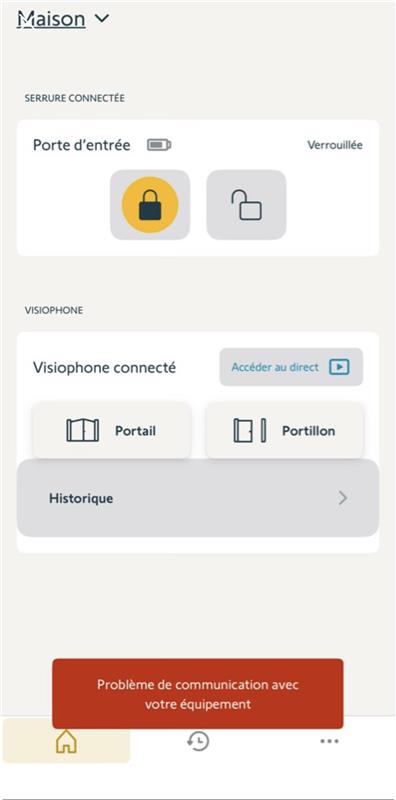 le message problème de communication avec votre équipement. Lorsque cela se produit je retire la batterie et je la remets et c'est ok, mais ce n'est pas normal de devoir faire cela à chaque fois. De plus que cette fois-ci je suis à distance et j'avais absolument besoin d'ouvrir ma porte à distance. Quelle serait la solution svp ?