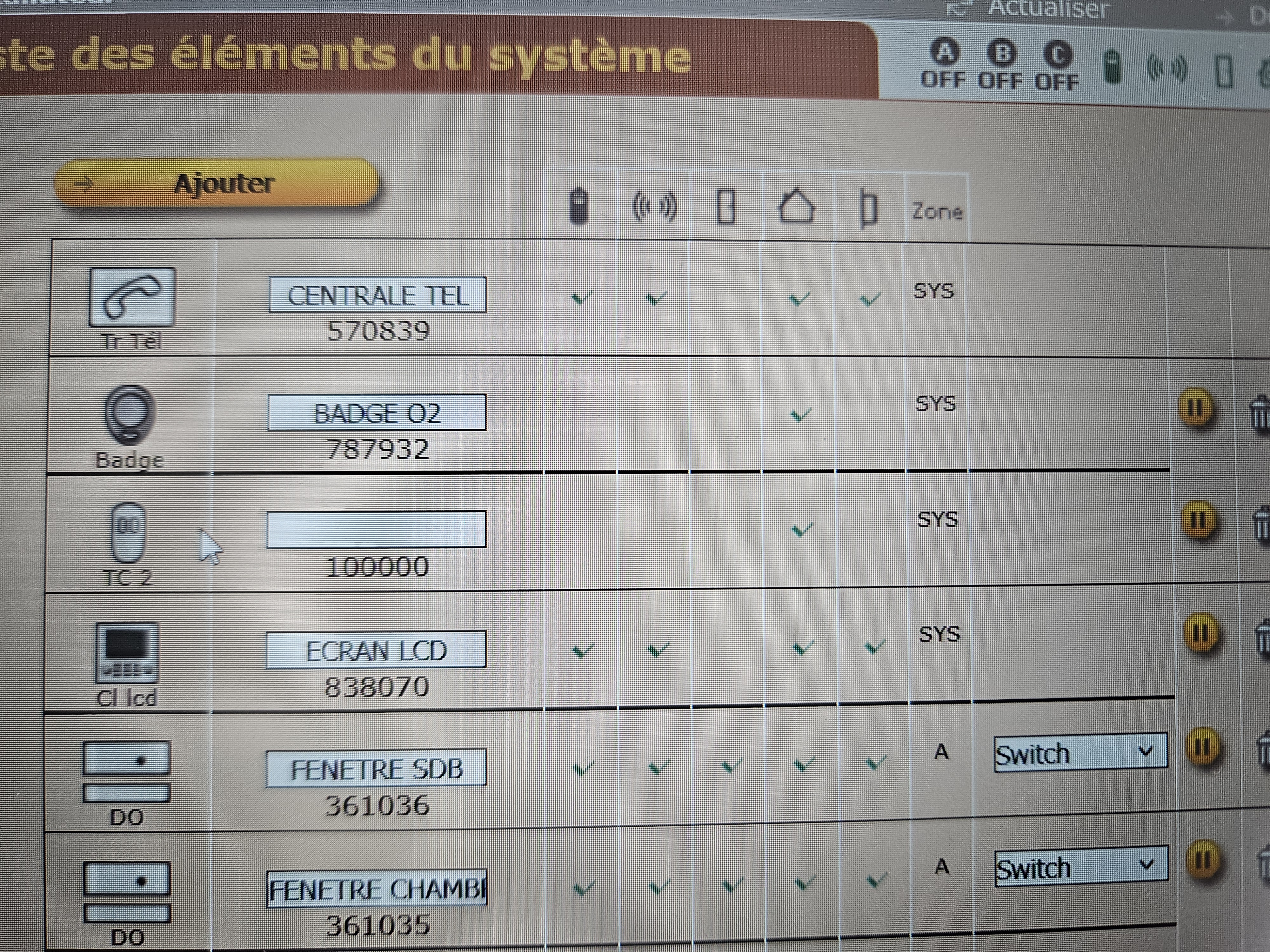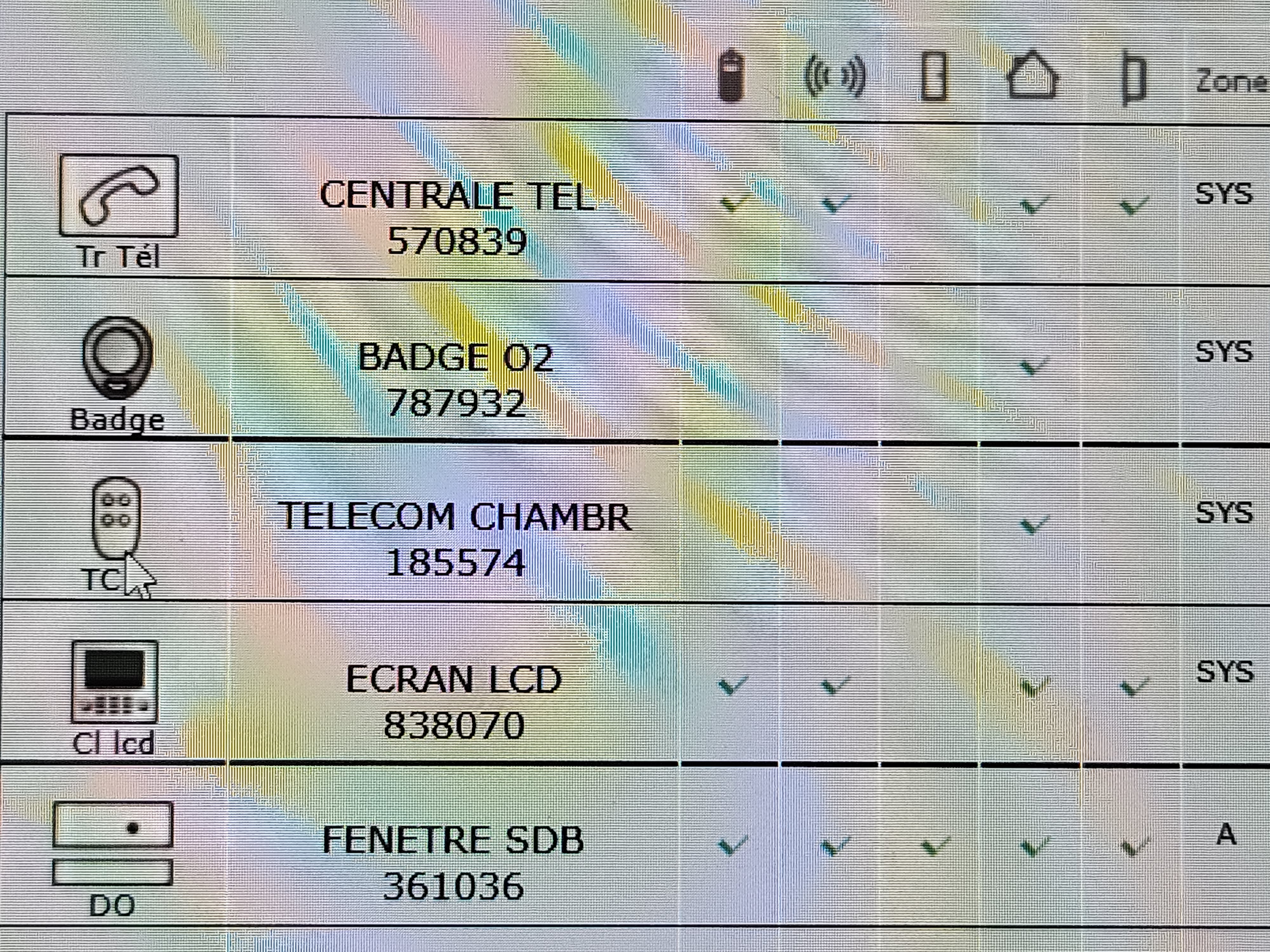 Par précaution j'avais pris une photo de ma configuration. On voit bien la télécommande avec 4 boutons et un numéro (qui avait été donné par défaut lors de l'installation, je présume)
