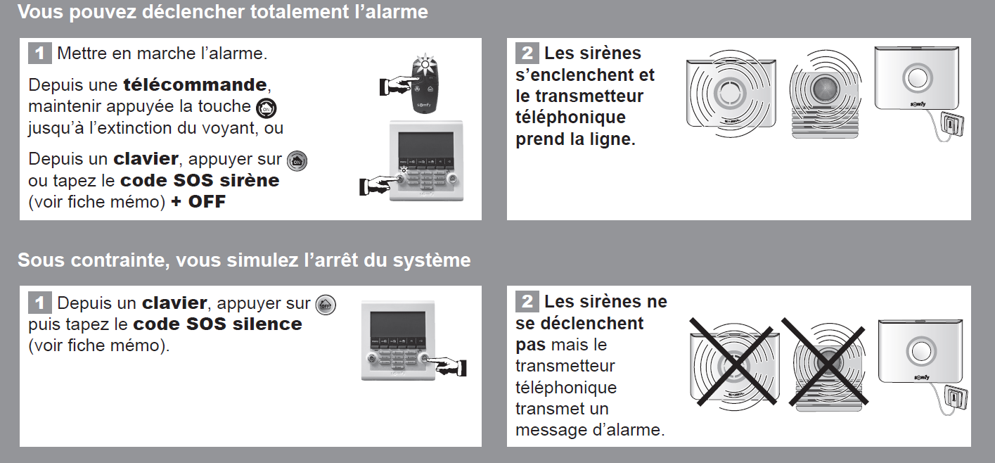 Il est possible de faire sonner les sirènes depuis une Protexiom en cas de besoin. (voir figure).