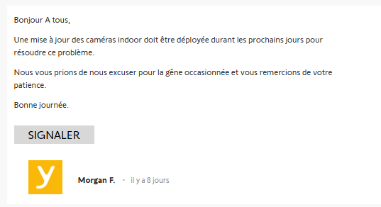 Depuis quelques jours, j'ai mes deux cameras indoor qui se déconnecte du wifi tous les jours, mais a des heures différentes l'une de l'autre.