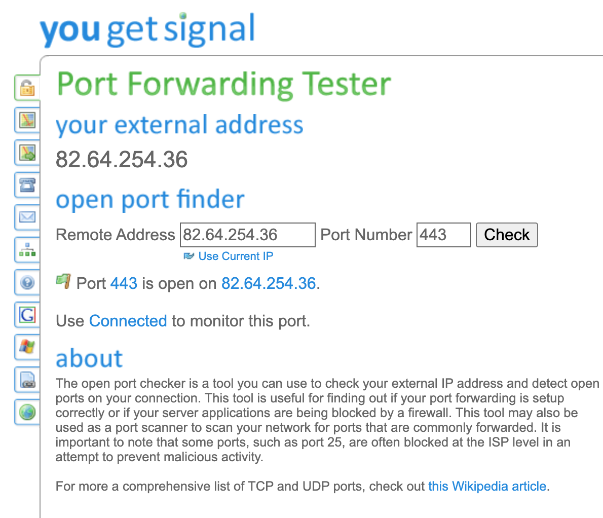 Les ports 80 et 443 sont ouverts et fonctionnels.