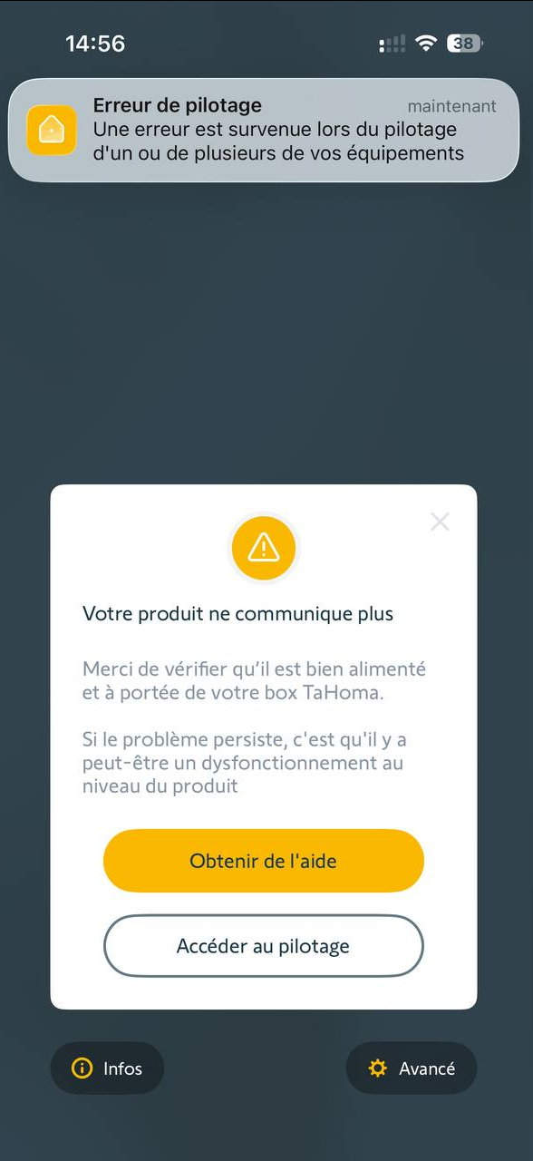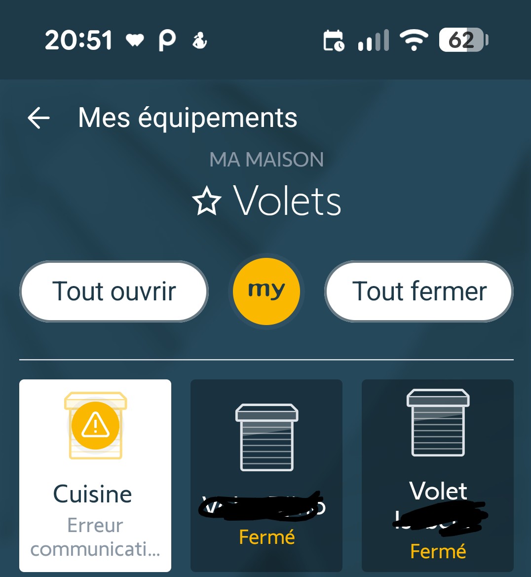 Depuis le 22/01 au soir mon application Tahoma indique une erreur de communication sur mes 7 volets Somfy IO.