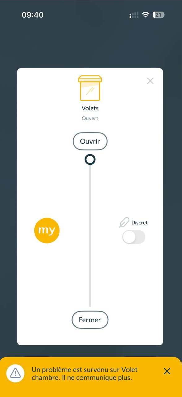 Je ne vois plus d'erreurs dans le pilotage de vos volets.