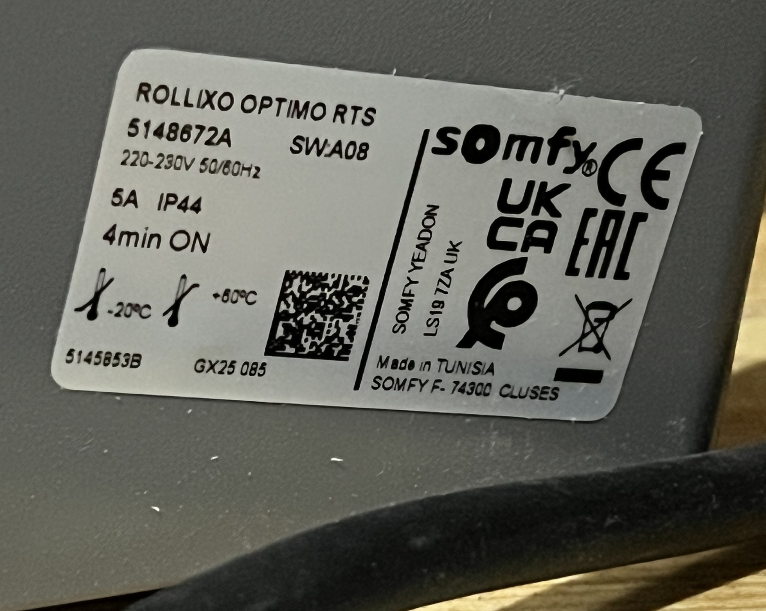Le boitier de commande est un ROLLIXO OPTIMO RTS (voir photos).