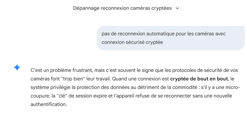 "C'est un problème frustrant, mais c'est souvent le signe que les protocoles de sécurité de vos caméras font "trop bien" leur travail. Quand une connexion est cryptée de bout en bout, le système privilégie la protection des données au détriment de la commodité : s'il y a une micro-coupure, la "clé" de session expire et l'appareil refuse de se reconnecter sans une nouvelle authentification."