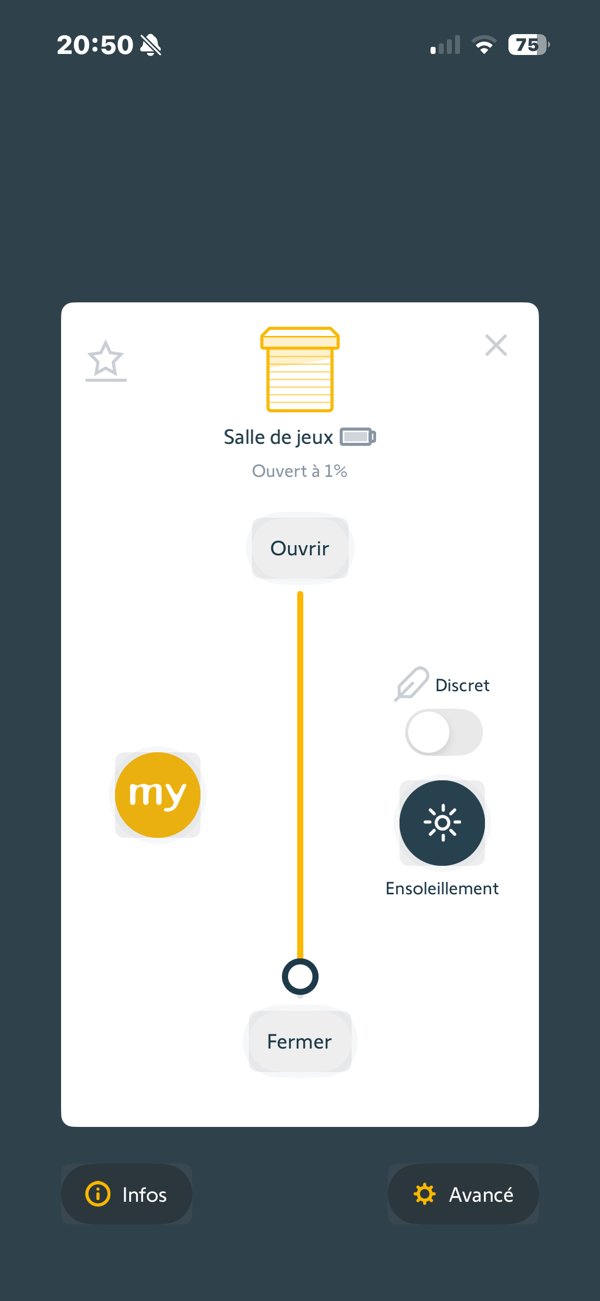 L’application tahoma switch détecte à la fermeture d’un volet roulant solaire, 1% d’ouverture du volet. Ça a pour conséquence que je reçois un message d’erreur quand je souhaite fermer entièrement le volet depuis l’application. Je mets 2 photos pour bien comprendre.