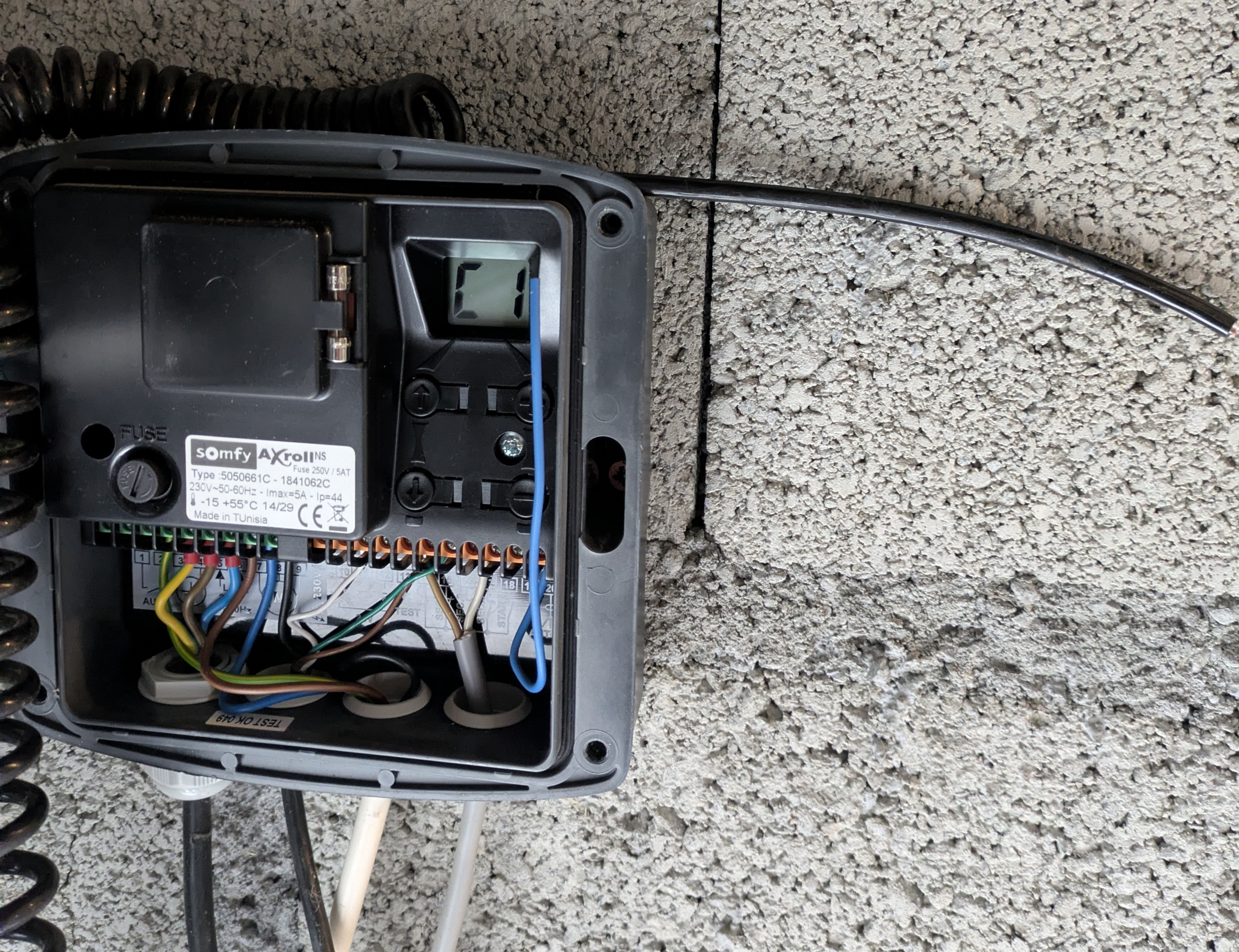 Le stop porte ne fonctionne (mea culpa j'ai coupé le câble) plus si bien qu'un jour la porte s'est toute déroulée alors qu'il y avait un obstacle.