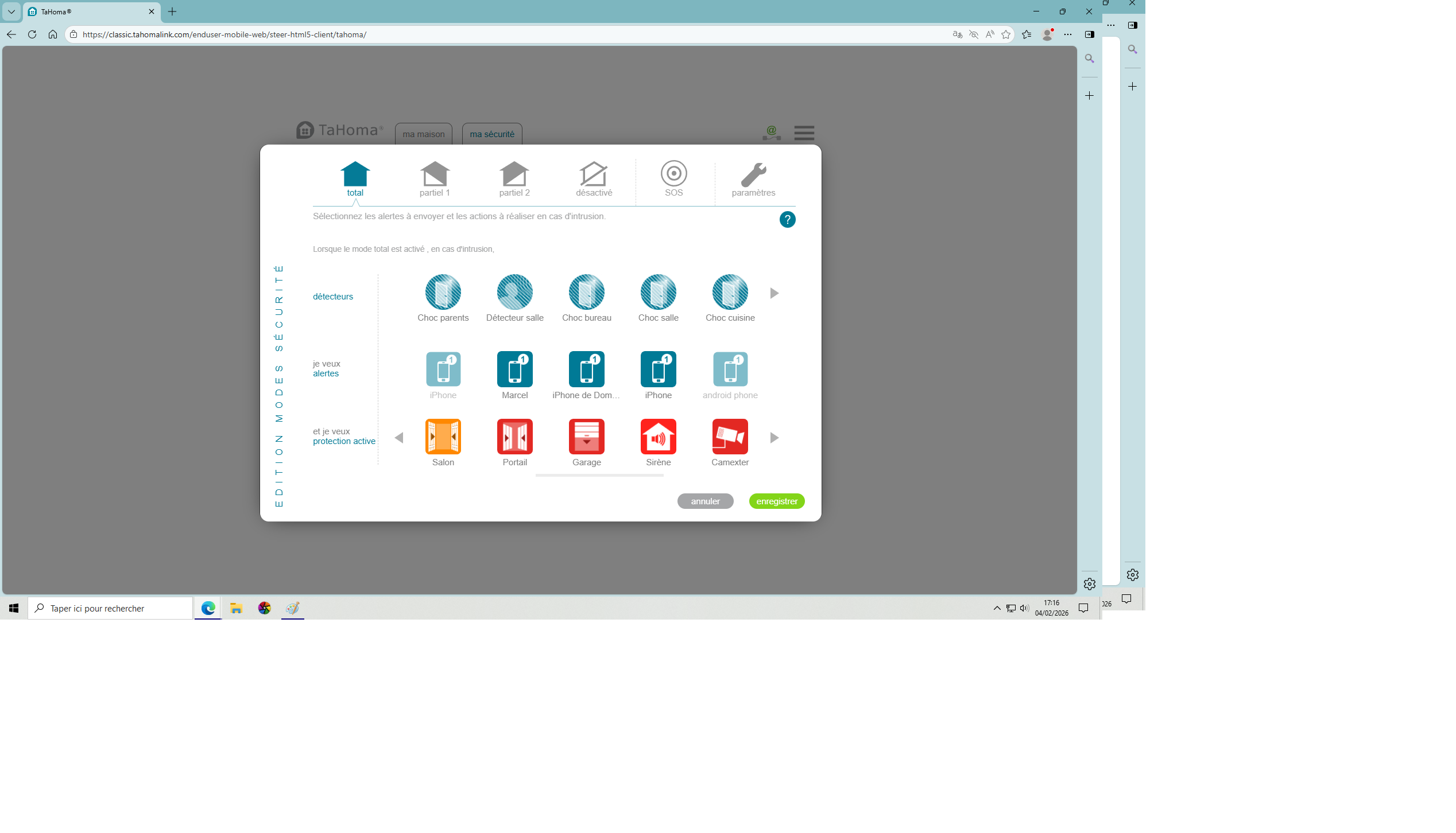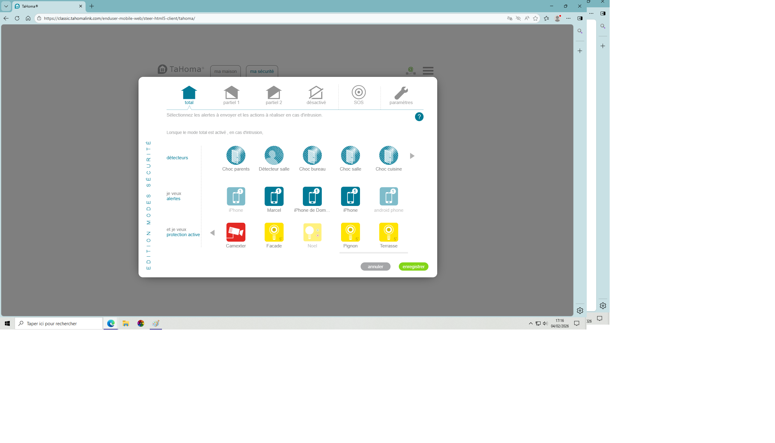 Sur la nouvelle Tahoma on peut faire des scénarios pour coupler des éléments extérieurs avec l'alarme.