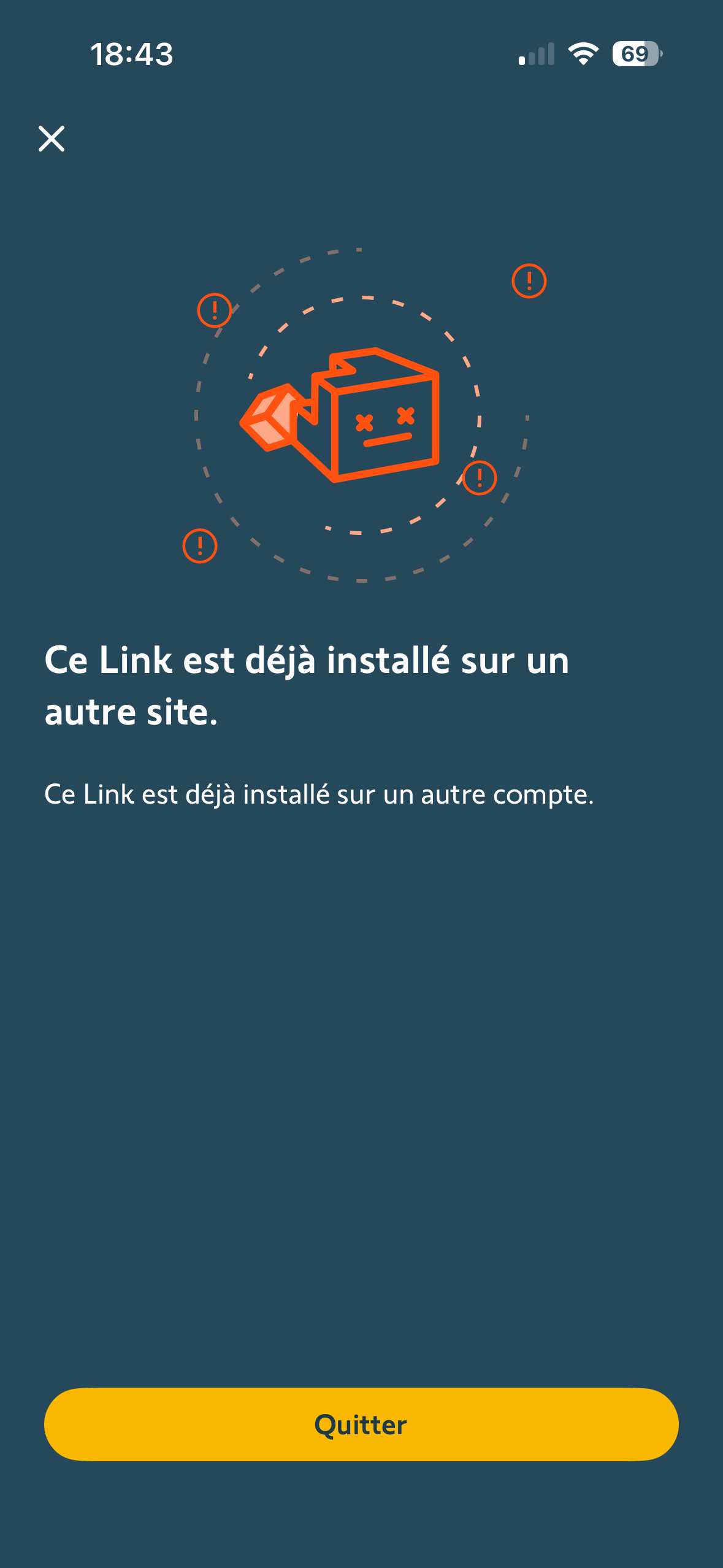 J'ai le message : "ce link est déjà installé sur un autre site" et "ce link est déjà installé sur un autre compte" (photos ci jointe).