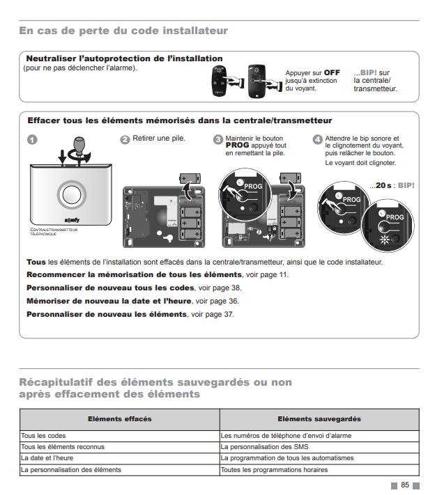Ceci dit, maintenant, j'aimerais pouvoir utiliser normalement ma "nouvelle" centrale d'occasion et à ce titre, il semblerait que vous aillez la possibilité de faire du ménage sur "://http://www.alarmesomfy.net/" sur la base d'un code numérique que j'ai capté sur le boîtier de l'alarme.