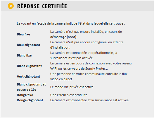 Ci joint la signification des couleurs de la Led;