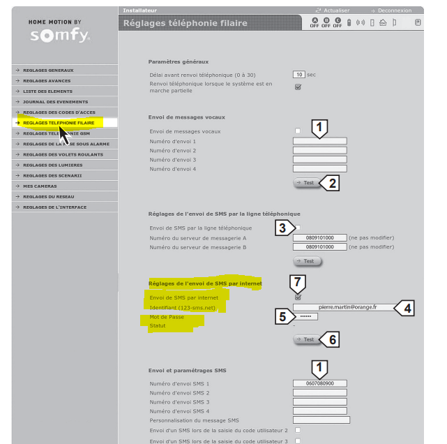 Sinon vous avez peut être l'option 123-SMS qui permet d'activer un service SMS par internet pour recevoir les messages en cas d'effraction, par contre ça ne marche que dans un sens. (Voir copie écran)