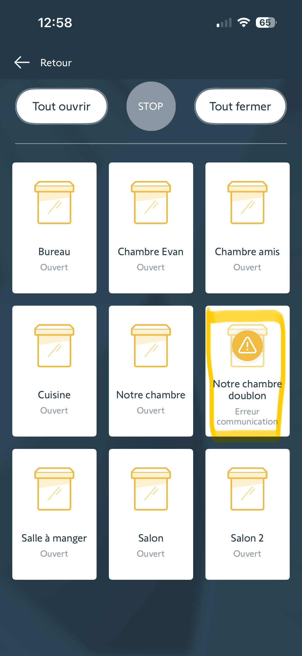 Nous avons fait une nouvelle recherche de volet et un “nouveau” (qui n’en est pas car c’est le même) s’est ajouté à la liste sans message d’erreur, c’est celui que nous utilisons et qui fonctionne.