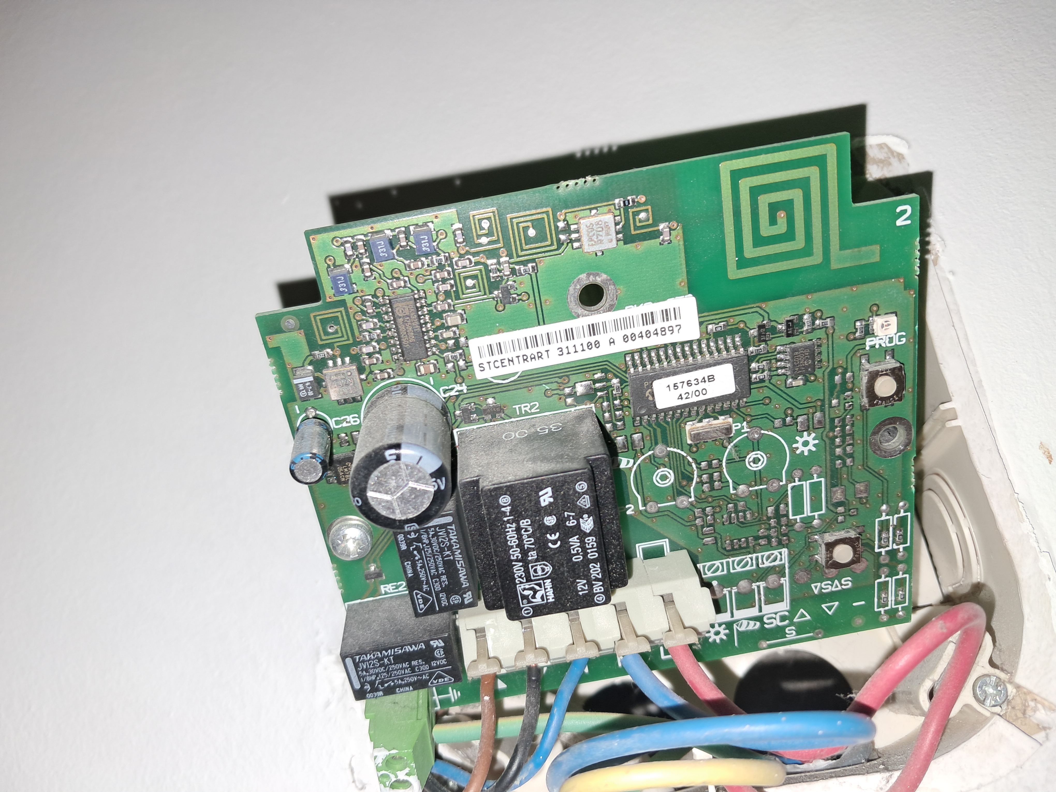 Vous êtes sûr que c'est du Somfy ? Est-ce qu'au moins vous avez la référence du moteur ? On dirait une carte filaire et non radio.