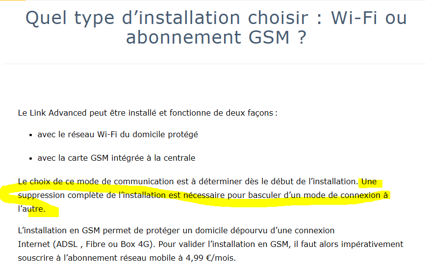 Il faut supprimer le Link de Somfy protect pour changer de type de connexion.