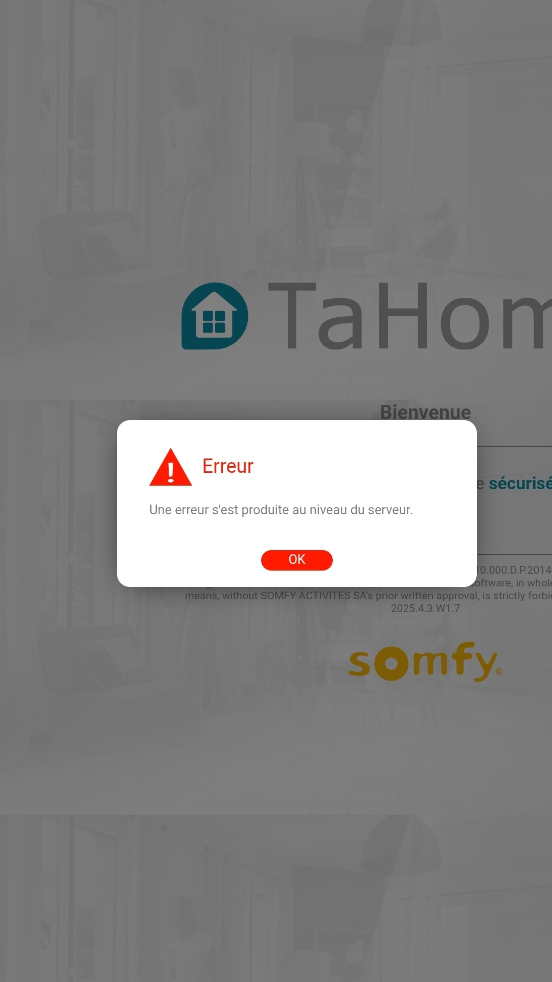 Je n'arrive plus a me connecter a mon compte tahoma (j'arrive a me connecter sur somfy mais erreur serveur dès que j'essaye d'accéder a tahoma)