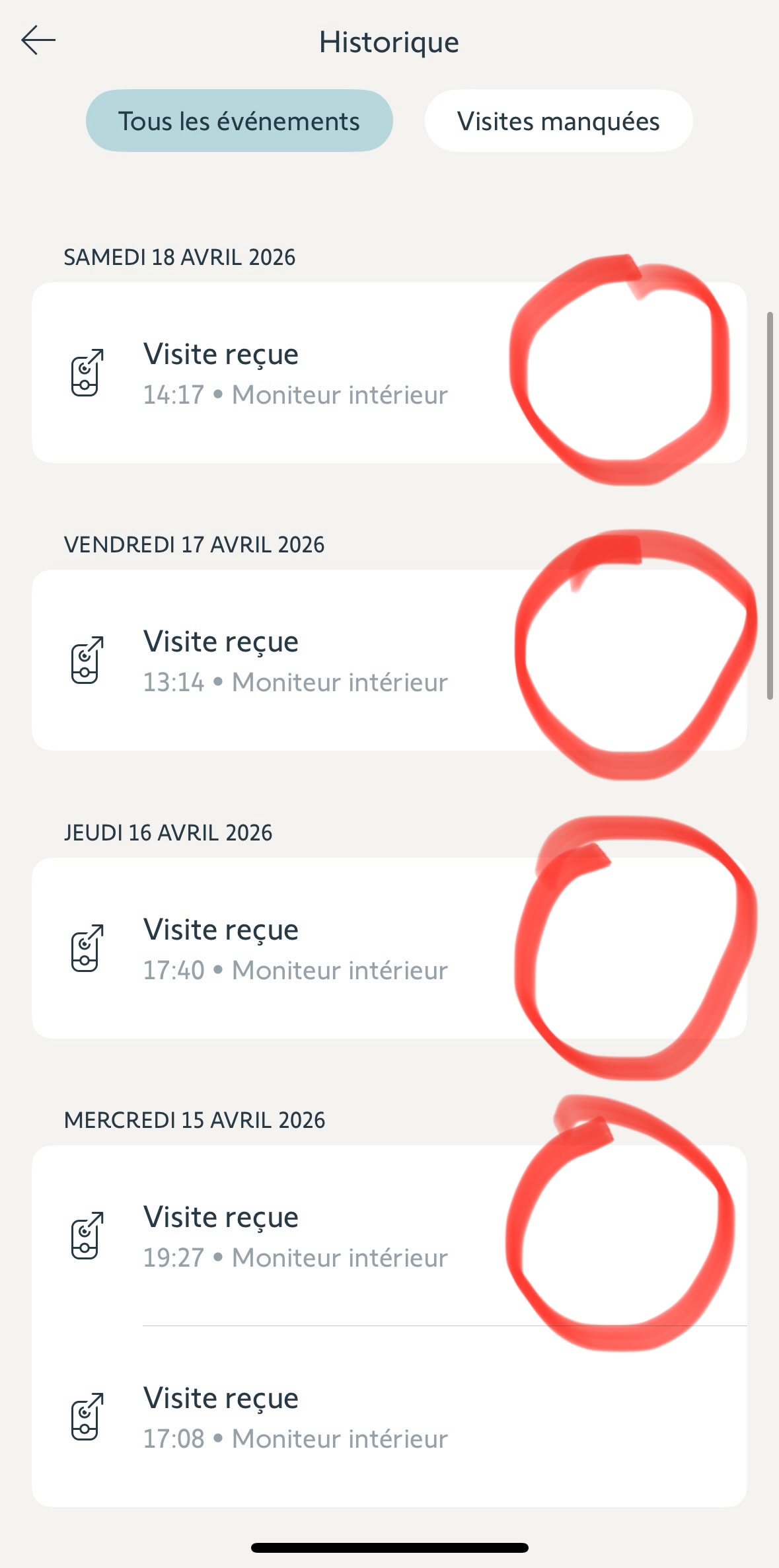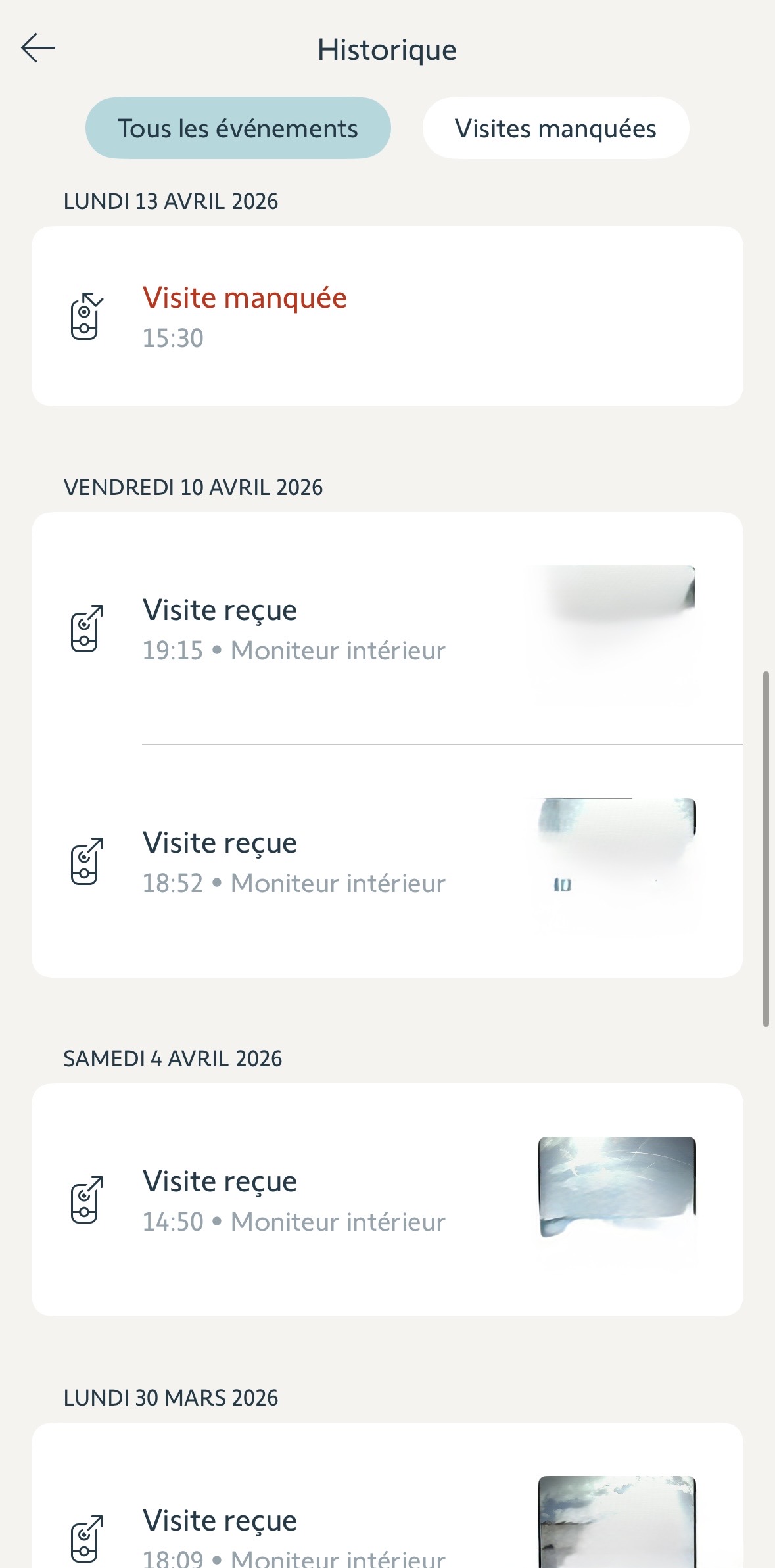 Pourquoi Depuis plus d’une semaine Lorsque je reçois une visite je n’est plus la photo du visiteur d’enregistrer dans mon visiophone, je précise lorsque je reçois une visite avec réponse sur mon visiophone et aussi lors de visite manquée (absence) je précise aussi que ma carte est bien vide et que j’ai déjà essayé en débranchant / rebranchant mon visiophone, (je précise aussi que la caméra du visiophone fonctionne bien car je peux visualiser en direct sans problème)