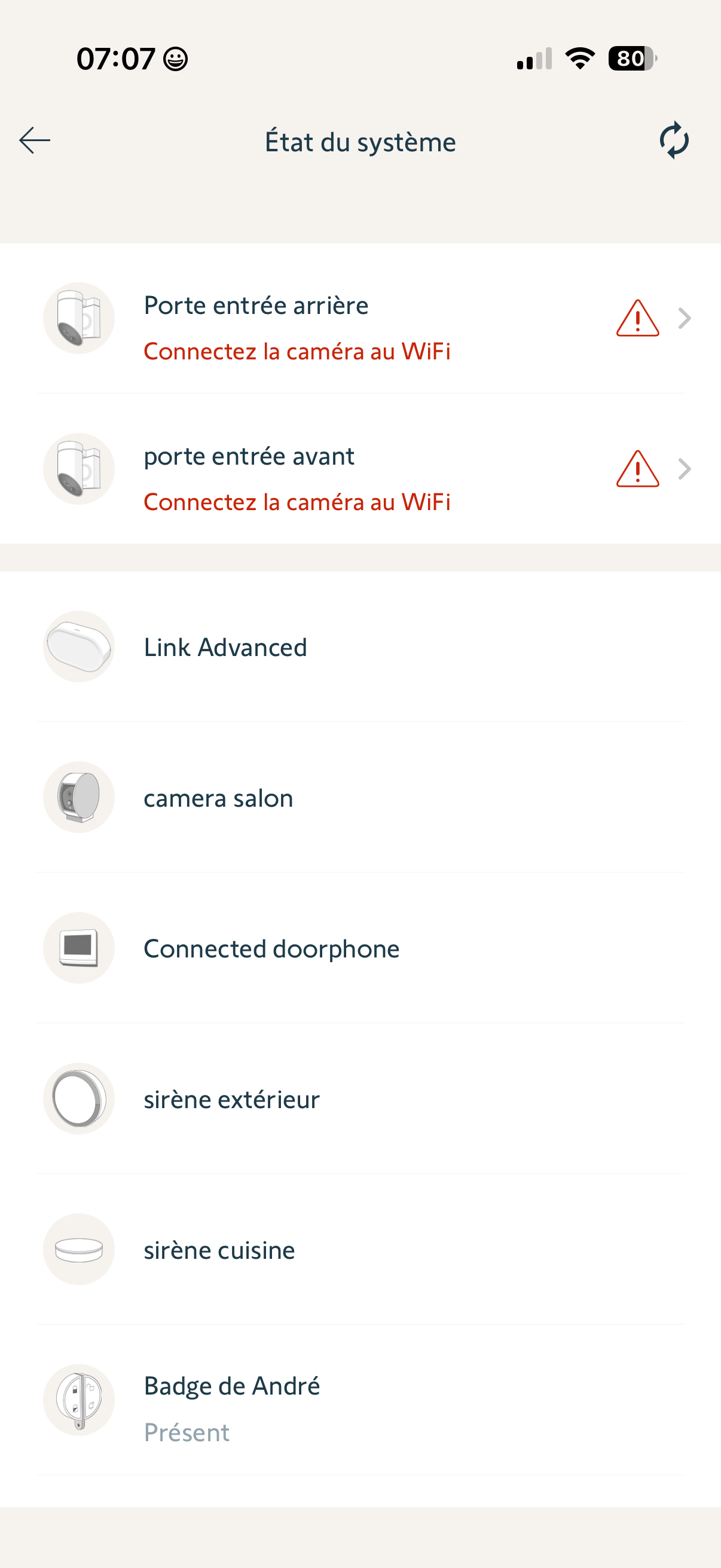 pour autant, les caméra apparaissent comme déconnectées pour le système Somfy.