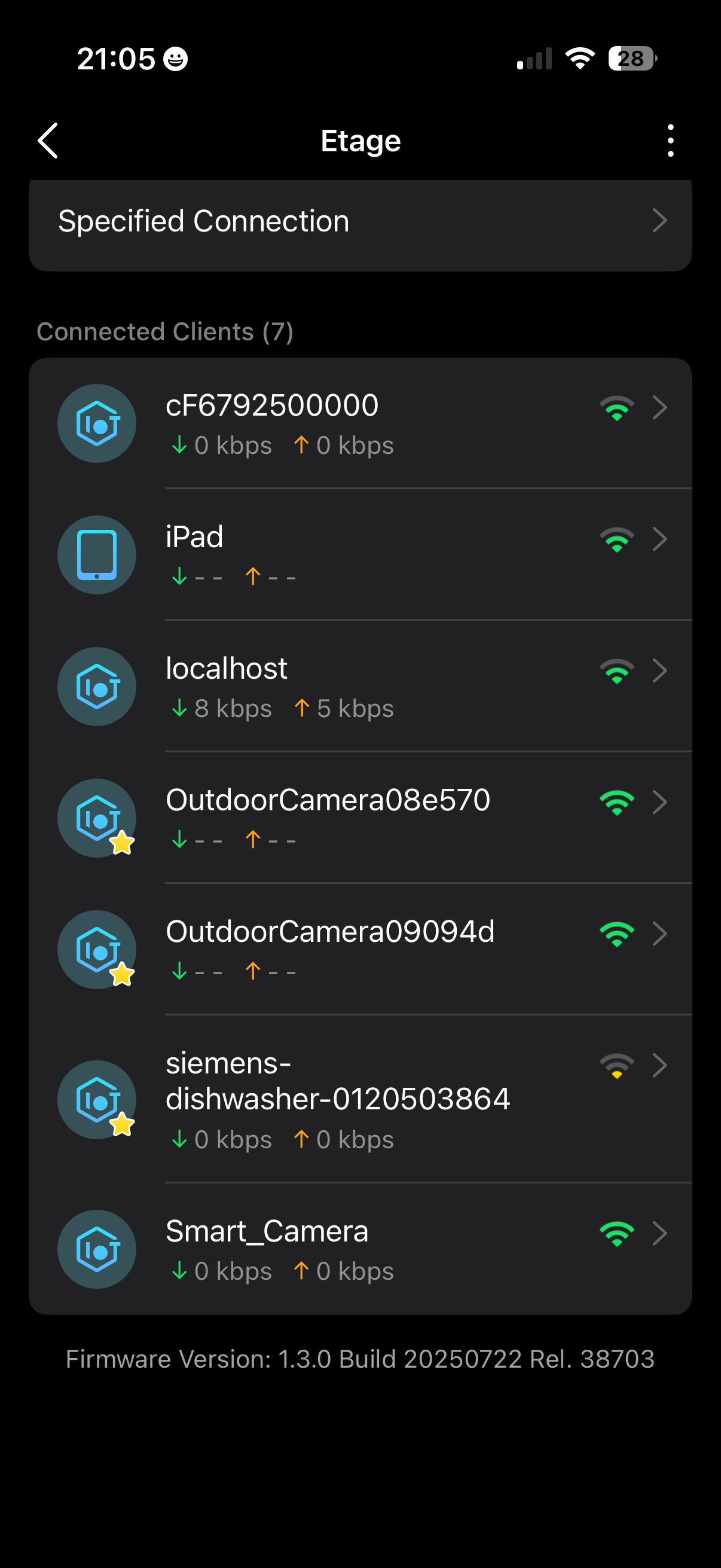 sur la portail du routeur, je vois que les caméras extérieures sont connectées avec une qualité de connexion maximale.