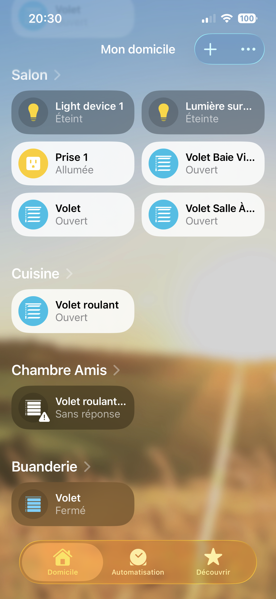 Par contre sur l'application TAHOMA, il n'est pas indiqué si les volets, gérés par le pont legrand Gateway, s'ils sont ouverts ou fermés, alors que cette information est bien indiquée sur Apple Homekit.