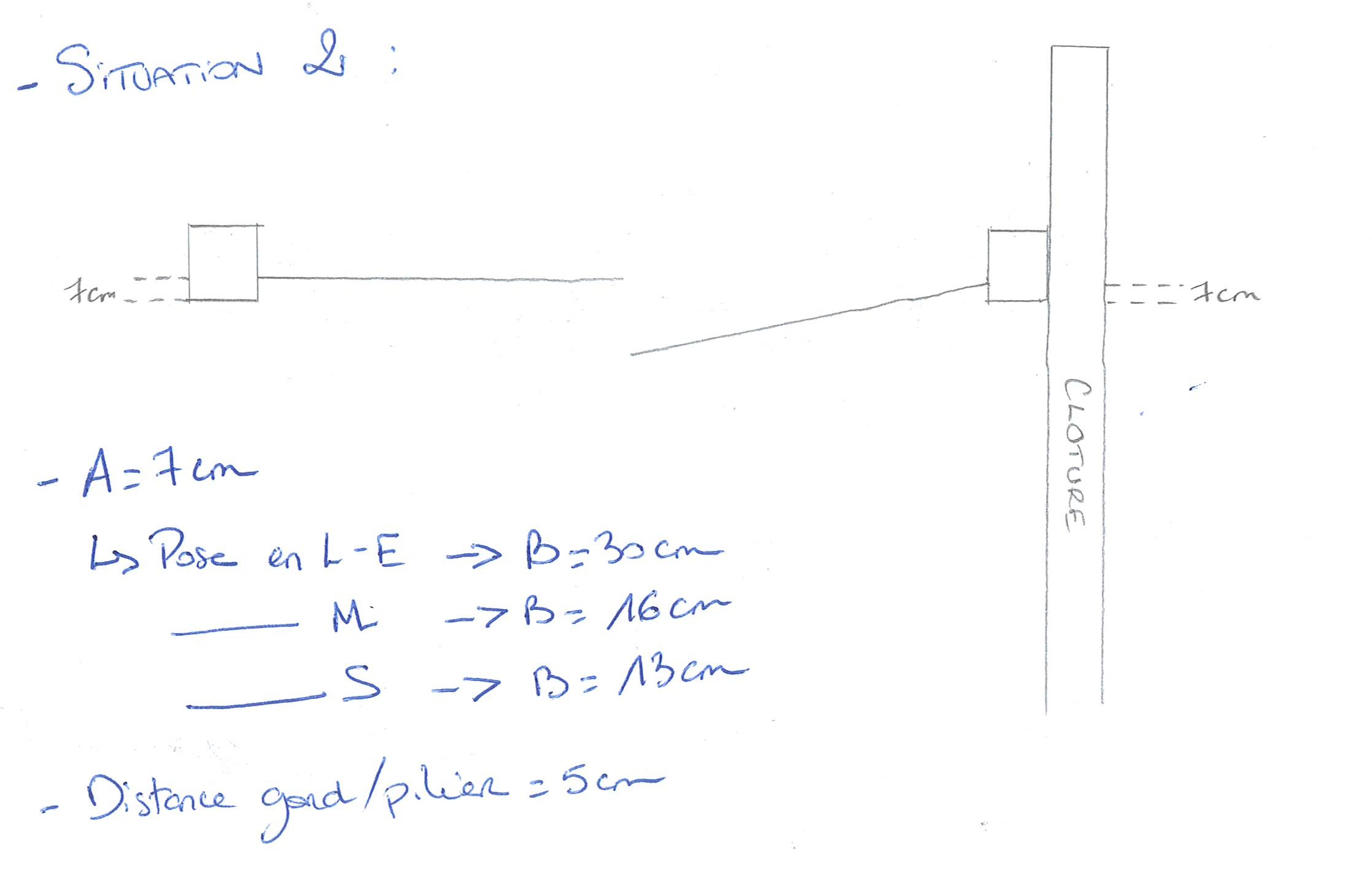 L'installation en M est possible mais place l'équerre en extrême bord du pilier, rendant sa fixation peut-être fragile. C'est pourquoi je m'interroge sur la pertinence plutot de retenir le montage en S, qui permettrait de recentrer l'équerre de fixation sur le pilier.