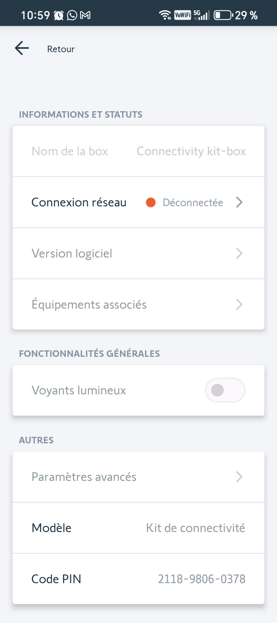 Je viens de remplacer mon kit de connectivité qui était en panne. Je n'arrive pas a installer le nouveau kit dans mon application car l'ancienne est toujours attachée à mon compte. Ci joint photo avec code pin de l'ancien kit. Merci