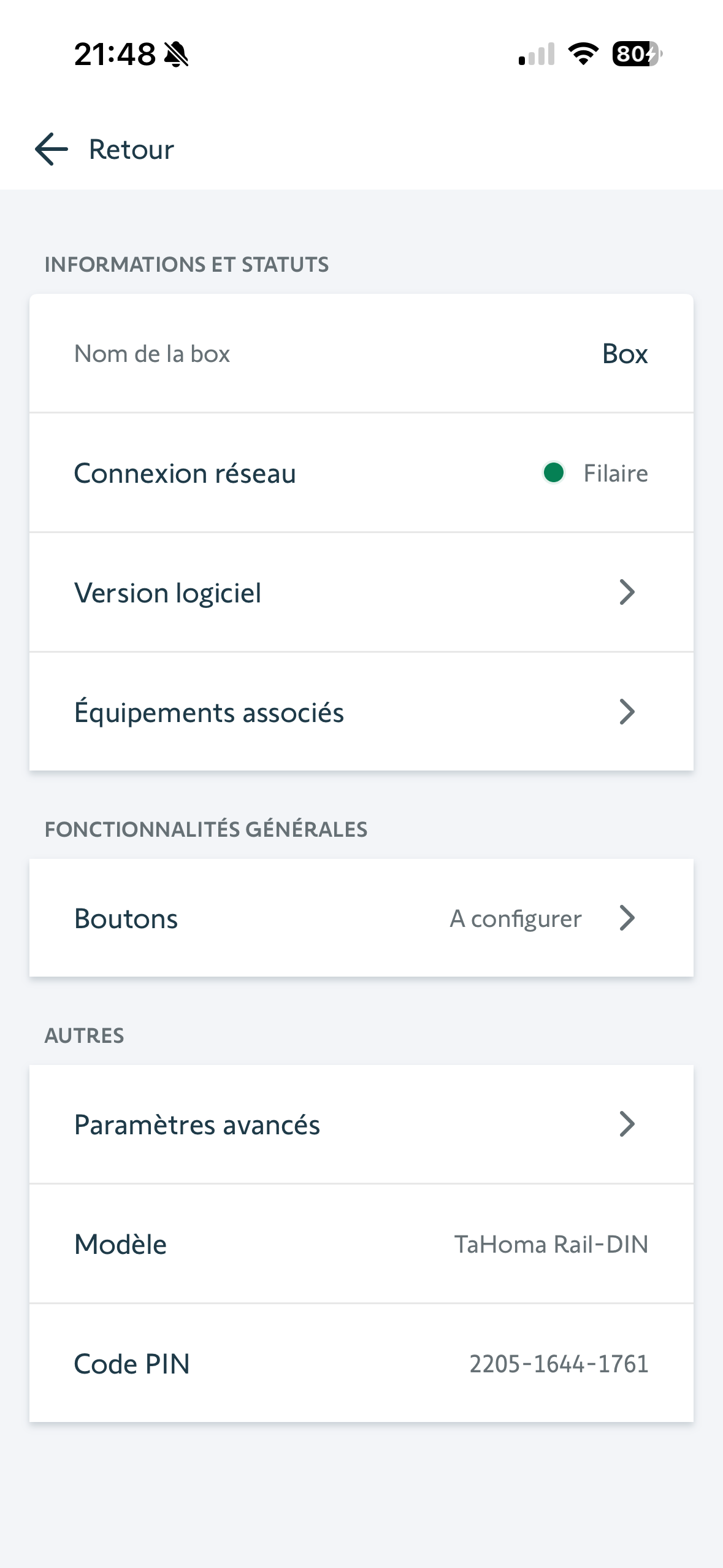 Sur l’application le tout est bien connecté à la box