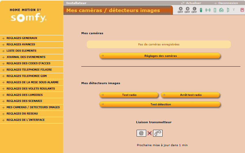 comme nous pouvons le voir, il n'y pas de liaisons entre votre système d'alarme et nos serveurs. Ce qui veut dire que même si vous avez cliqué sur le bouton pour mettre à jour vos codes d'authentifications avec nos serveurs cela n' pas fonctionné.