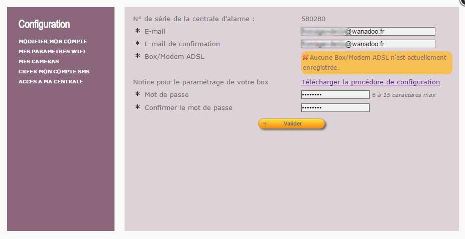 Les réglages de la box n'ont rien à voir avec l'accès au compte Somfy.