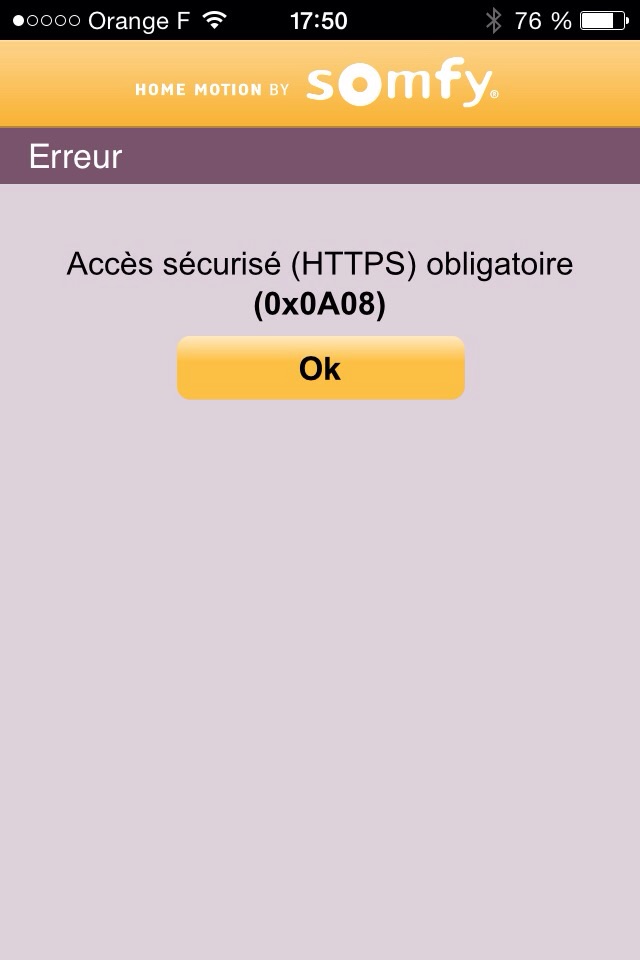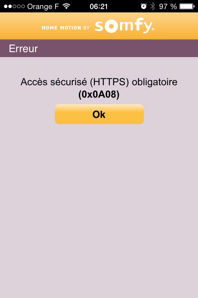 Ci-joint message erreur lors de la connexion en 3G par l'appli somfy en photo.