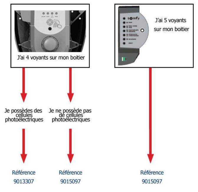 bonjour , merci de me préciser la référence pour le remplacement du boitier electronique sur mon SGA 5000 , le site en propose 2 l'un à 149 et l'autre à 199 € , le mien comporte 4 voyants et je n'ai pas installé de cellules photoelectriques , merci pour votre réponse