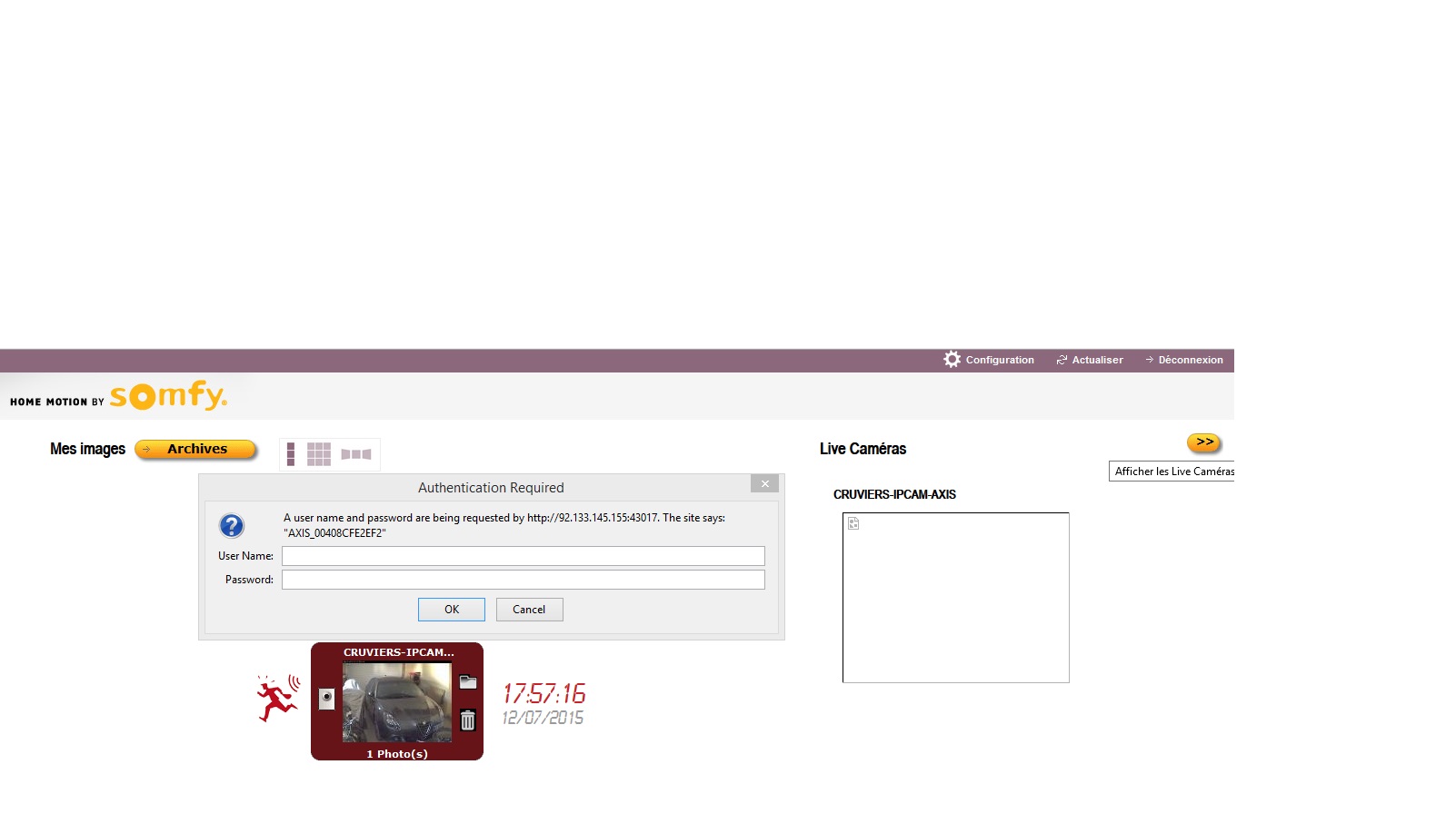 Depuis tout à l'heure ça refonctionne sans rien faire. Maintenant je veux accéder au Live depuis mon smartphone et c'est là qu'il me demande un mot de passe que je veux lancer le live pour accéder à ma caméra. J'ai le message " Authentification requise pour AXIS-00......... avec une demande de nom d'utilisateur puis mot de passe. utilisateur1 et mot de passe 1111 ne fonctionne pas