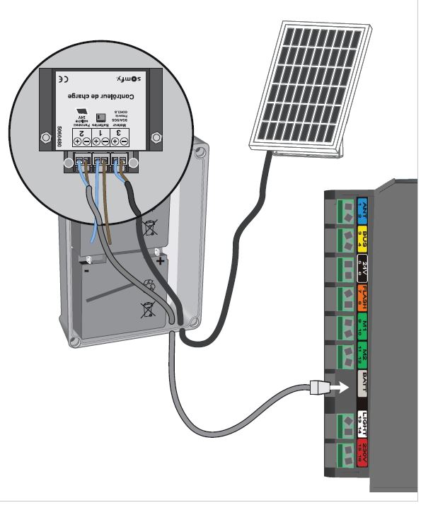 Débrancher le connecteur "BATT" du boitier électronique qui relie le solarset.(Voir FJ)