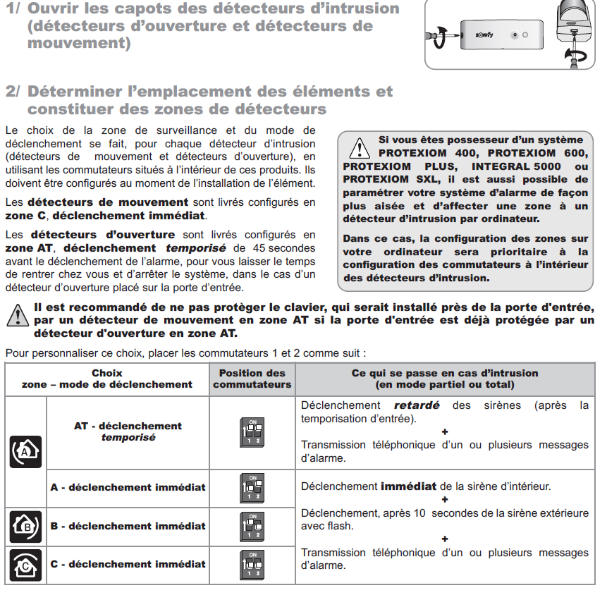J'ai installé mon alarme protexiom, ça fonctionne niquel, seulement des que je rentre je passe devant le détecteur et l'alarme ce met a sonner, je n'ai pas le temps de l'éteindre, j'ai lu ici qu'il fallait mettre le détecteur en mode AT mais je ne c'est pas comment faire. si vous pouvez m'aider svp