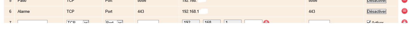 oui je vous confirme que le NAT a bien été parametré comme dans la doc une ligne avec 443 et autre ligne en 80 par contre dans la colonne ACTIVATION c'est Désactiver ou Activer