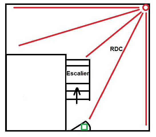 • un capteur de présence en haut des escaliers (qui surveille la montée des escaliers et la porte d'entrée qui est juste en bas)