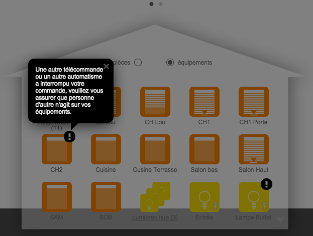 Dans le cas où un appareil n'est plus joignable on obtient un point d'exclamation sur l'îcone en haut à droite. C'est tres pratique pour voir si on a un souci avec l'appareil.