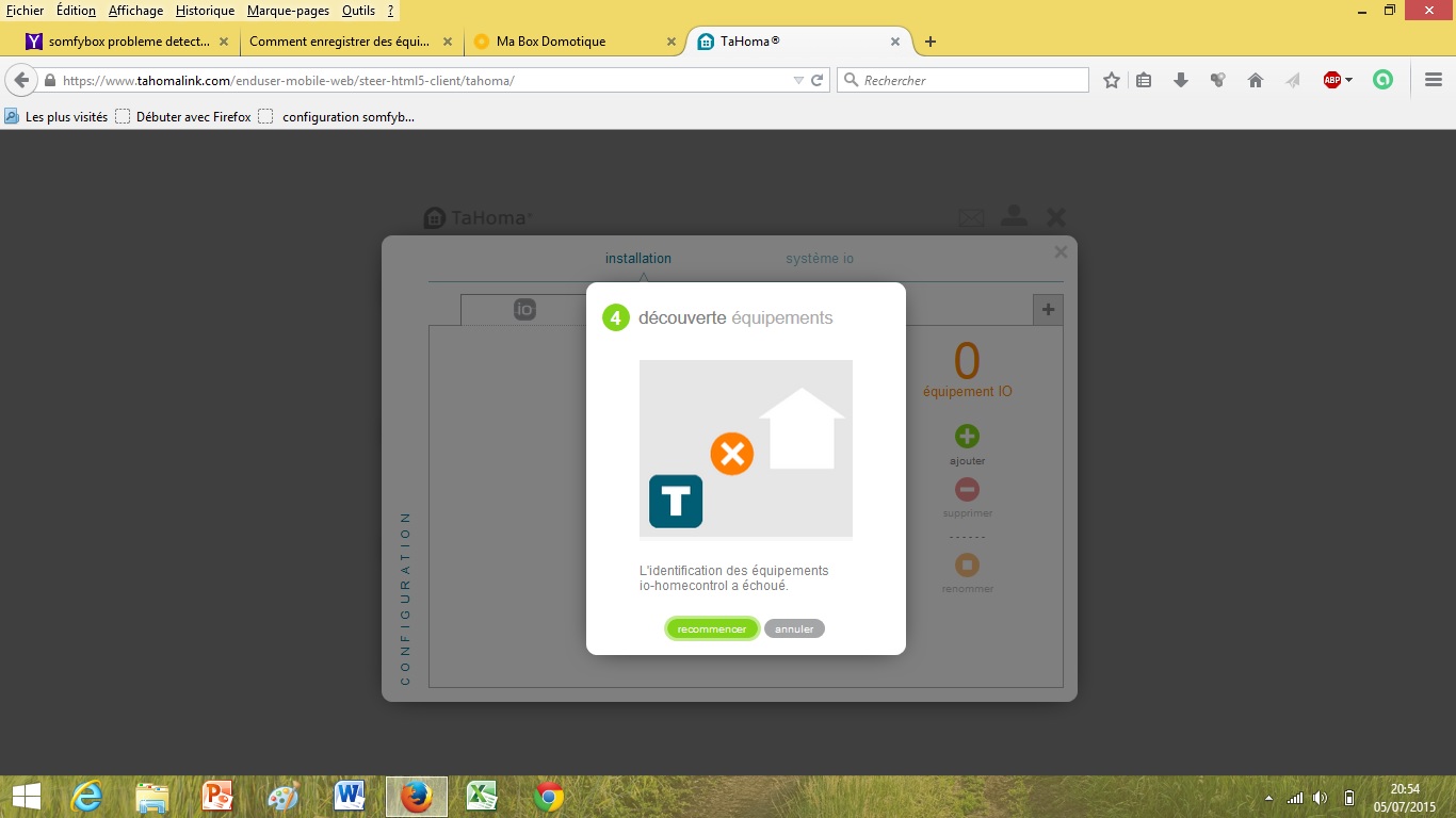 bonjour, malgre l'appui sur le touche prog puis de ok dans installation syst IO de la telecommande smove origin IO notre somfy box ne detecte pas le volet. nous venons de faire l achat de la somfy box. Pouvez vous nous aider. merci.