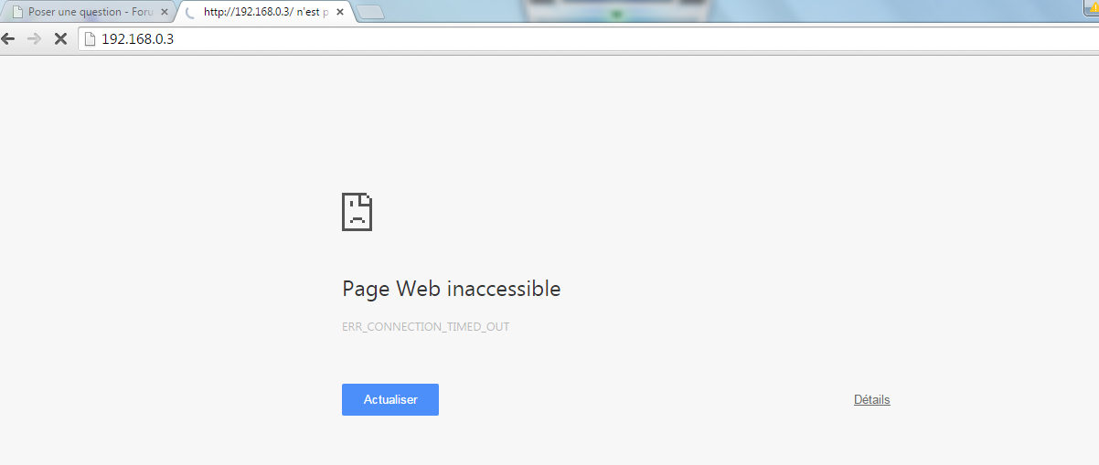Désolé, erreur sur adresse IP Centrale voici la nouvelle suite à réinitialisation: 192.168.0.3