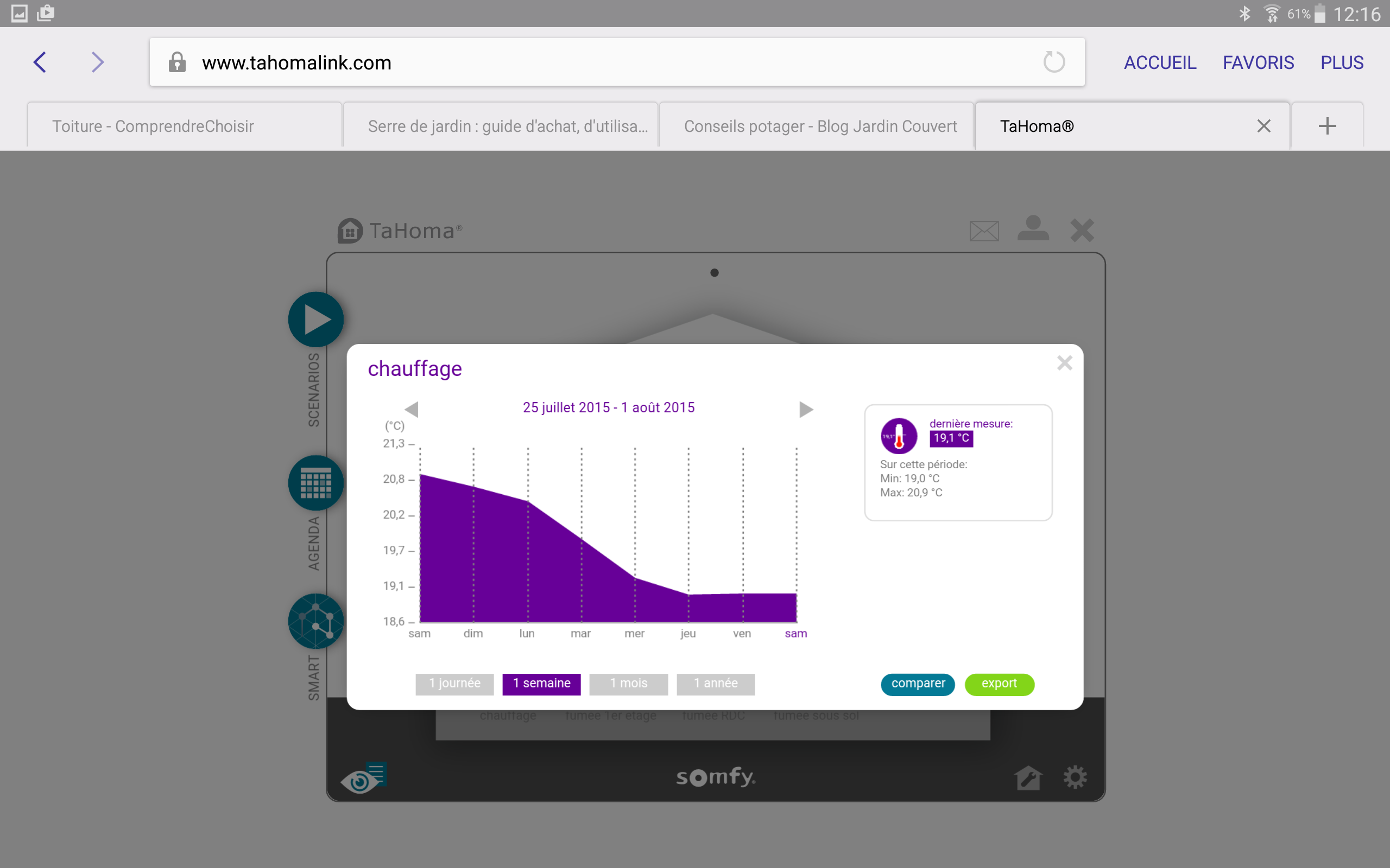 Si j'essaie simplement de voir les températures de la journée, à l'intérieur, grace à la boite somfy, je vois un graphique uniforme mais pas du tout ce que je vois, soit avec la tablette, soit avec le pc!