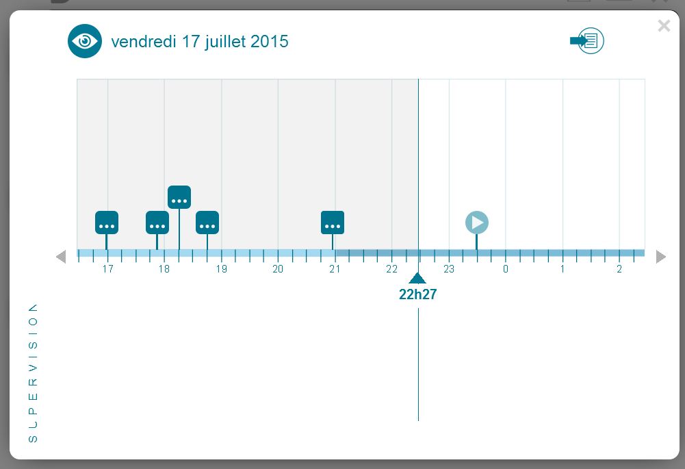 Ce bouton sert à visualiser l'activité horaire du système : Scénarios, fonctions smart, détections, actions, ...