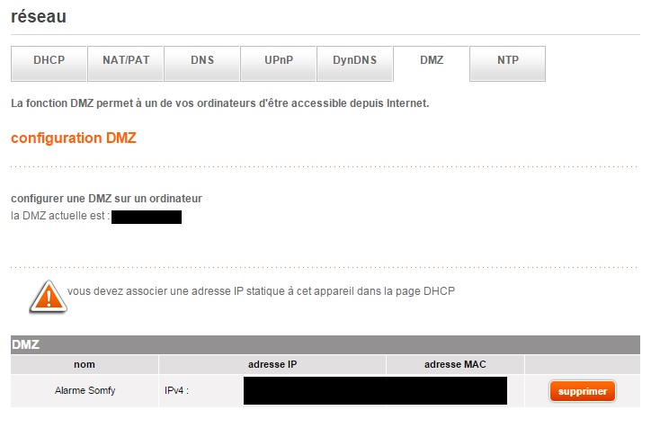 Peux-tu mettre des impressions-écran du Réglage de l'interface et du Réglage du réseau de ton alarme et de l'ouverture des ports de ta livebox ? Ce sera plus facile de savoir ce qu'il ne va pas.