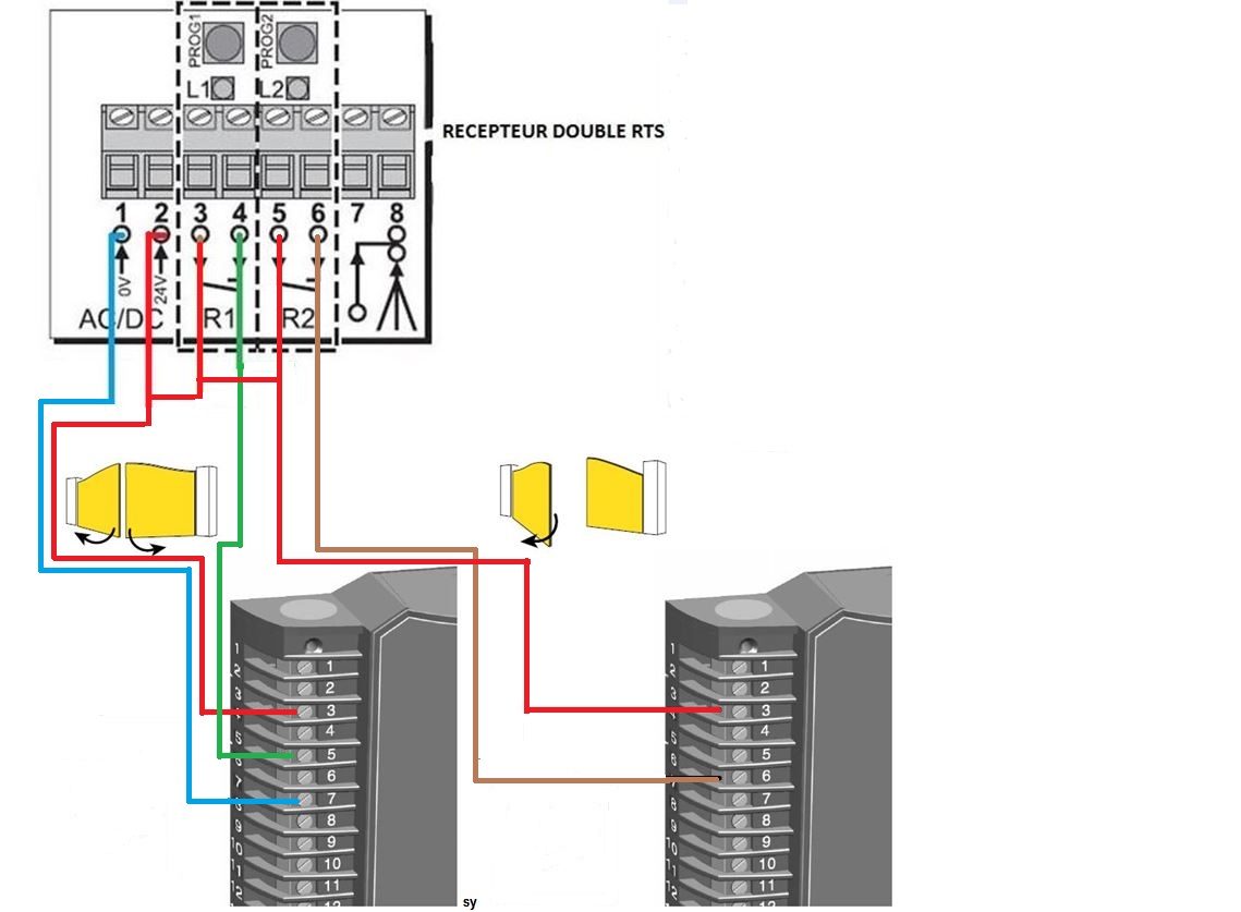 Voici un dessin pour le branchement du récepteur double RTS sur votre Passeo 630.